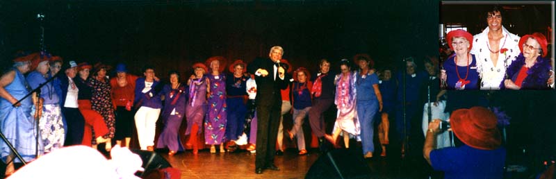 | O'l Blue Eyes had one of the lrgest Rockette Kicking lines at a recent RED HAT LADIES function at Bonnie Castle , Alexandria Bay NY. Nick Mulpagano |